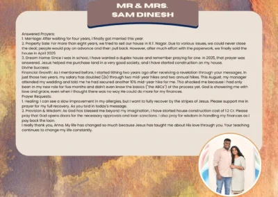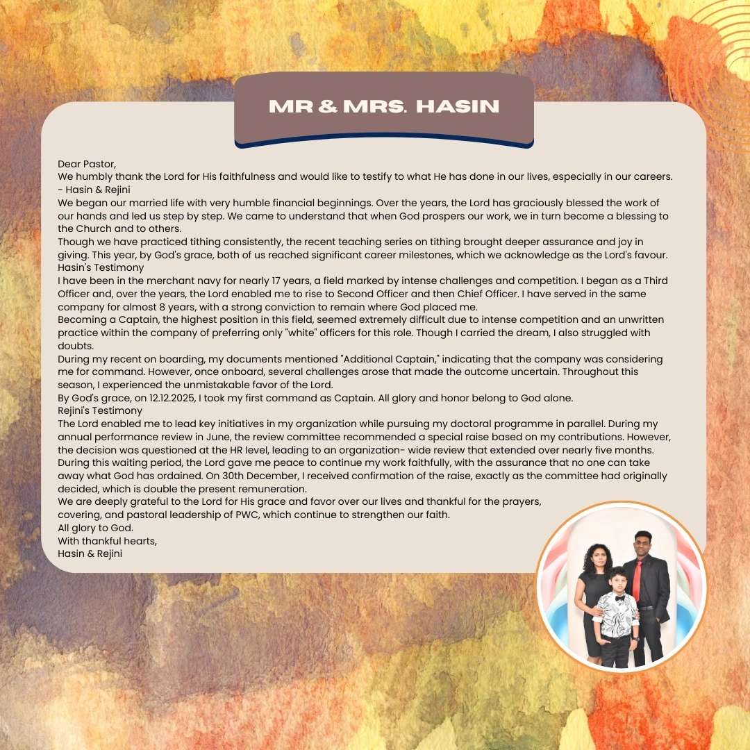 Pastor Gracewin resides in Bangalore with his lovely wife, Mrs.Sangeetha Gracewin and their three children Charis Adeline, Chelsea Faith and Oliver Blaze.