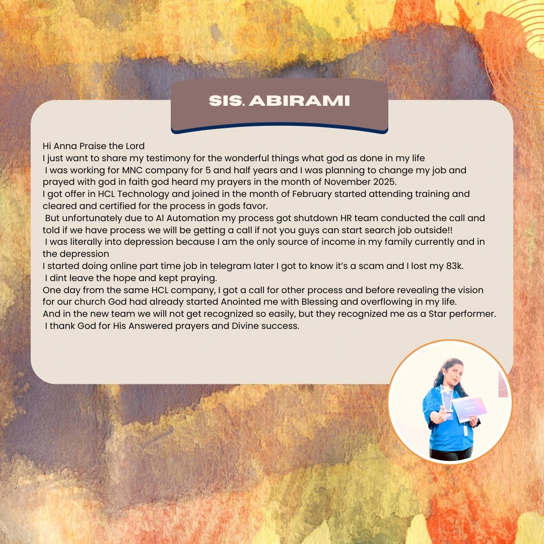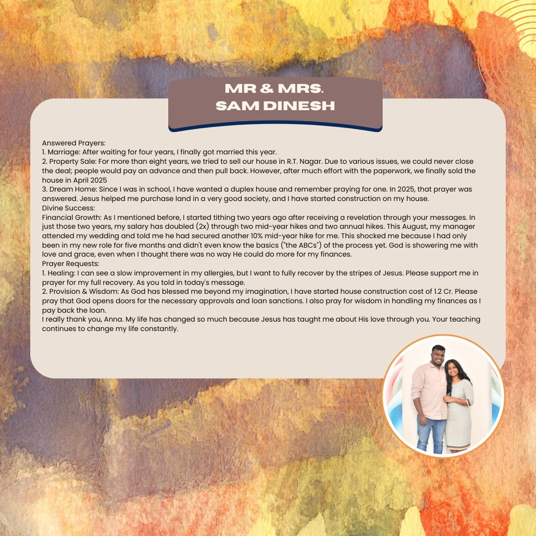 Pastor Gracewin, who taught us that through the blood of Jesus we are cleansed and the Holy Spirit’s anointing rests upon...